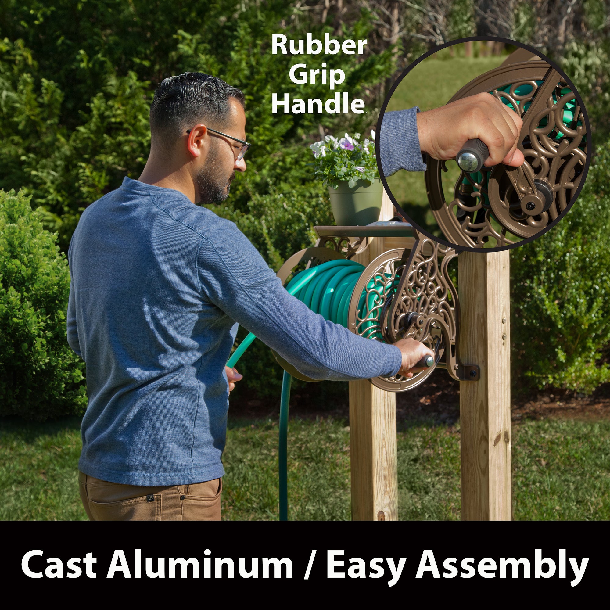 • Holds 125ft of 5/8" Garden Hose