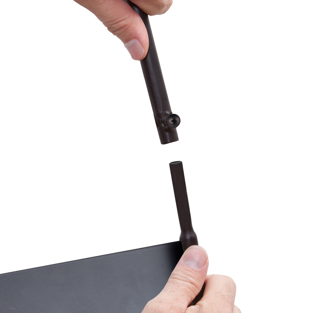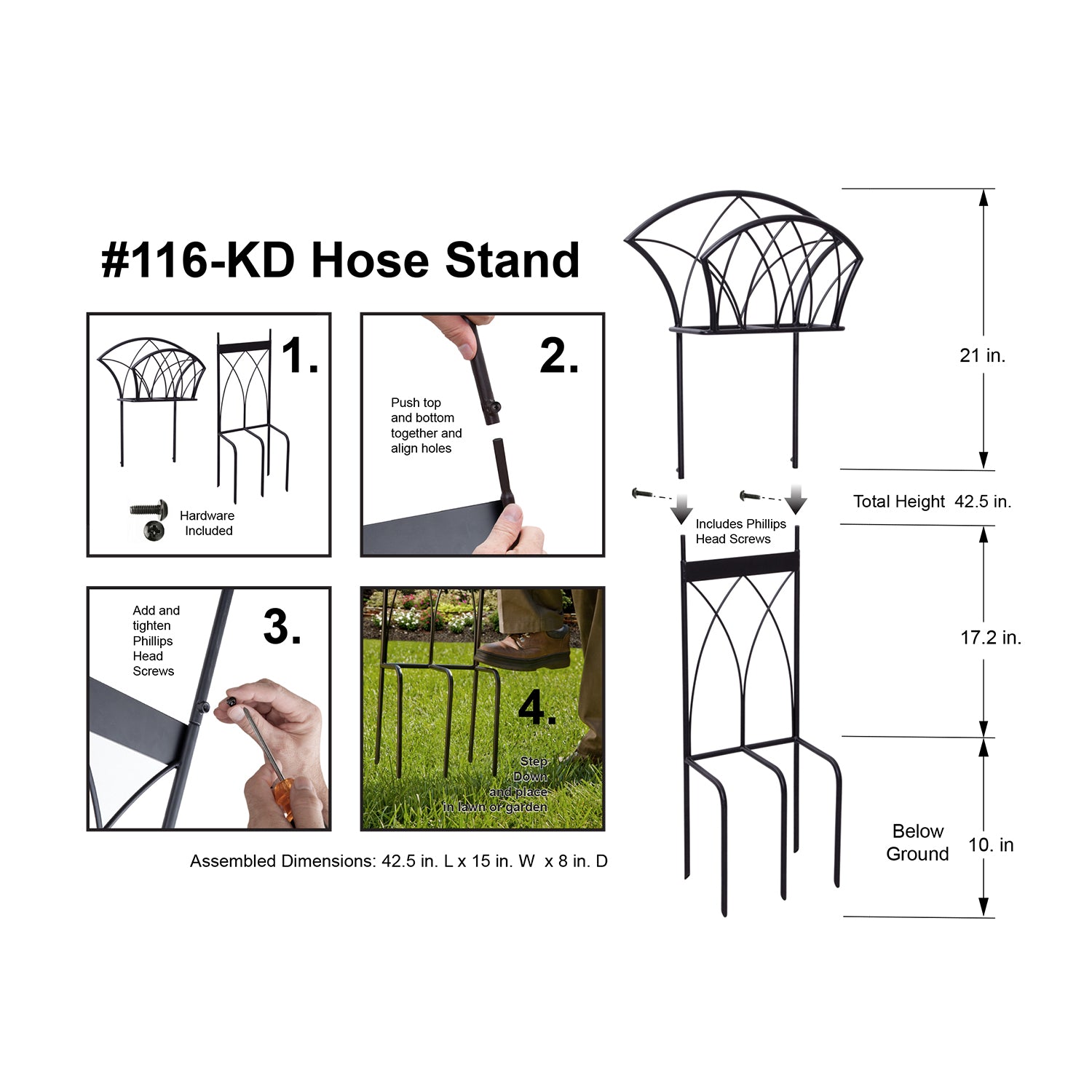 The gothic inspired Liberty Model 116-KD hose stand offers an attractive solution for storing your garden hose. No tools are required for installation! Just step down on the cross bar until anchors are firm planted in the ground. Protected by a weather resistant powder coat finish.
