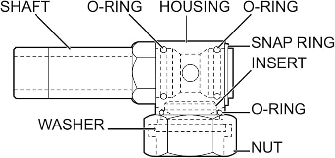 • Two o-rings are located inside the swivel. To get to the o-rings, you will need to take off the retaining clip at the end of the swivel. After the clip is off, pull the square head of the swivel off. Retaining clip pliers are needed to remove the clip.