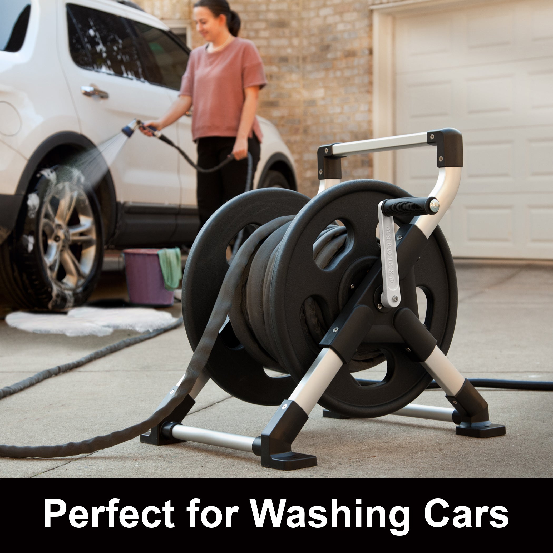 At only 12.2 lbs., it is designed for easy and lightweight maneuverability. Keeps your garden hose organized and kink free.
