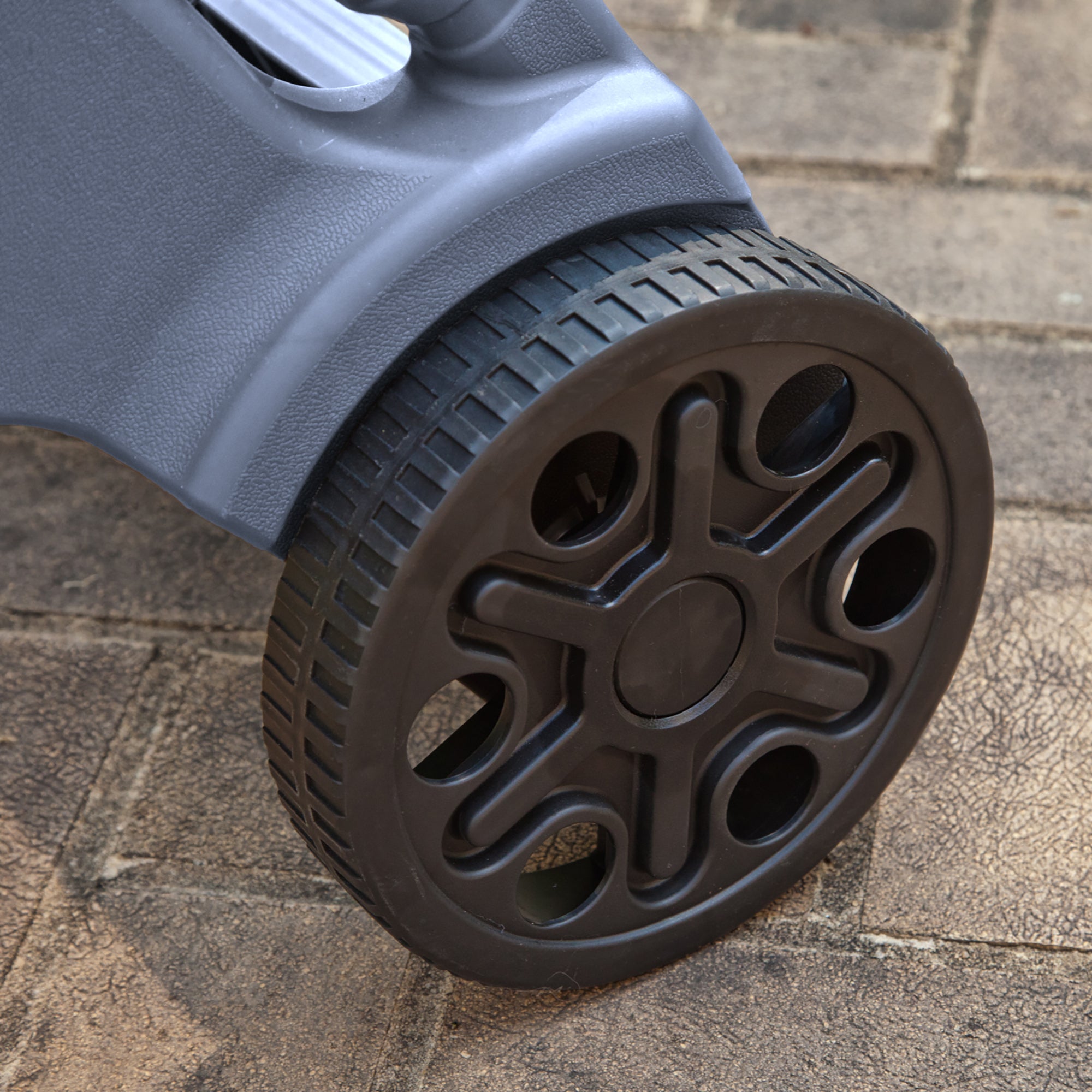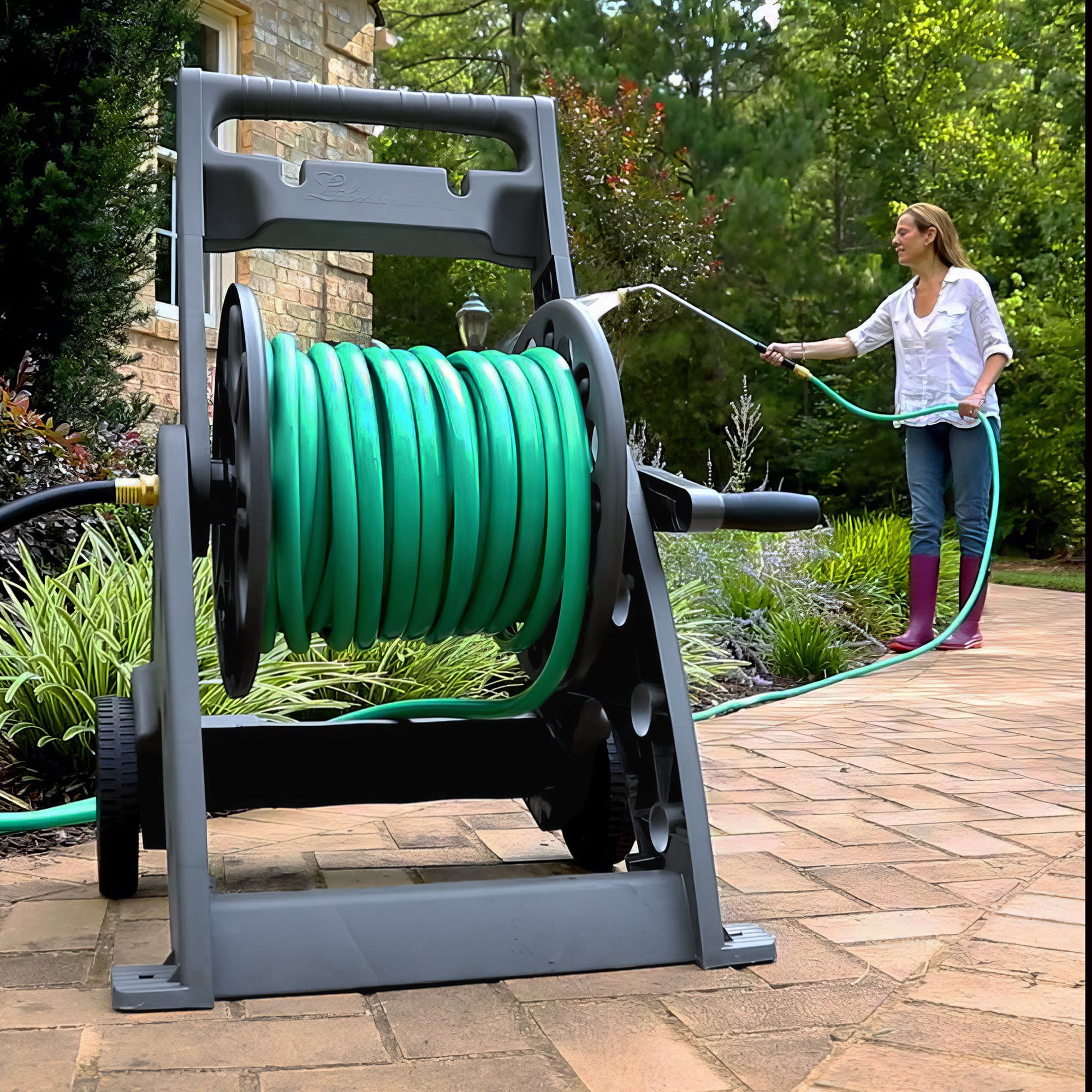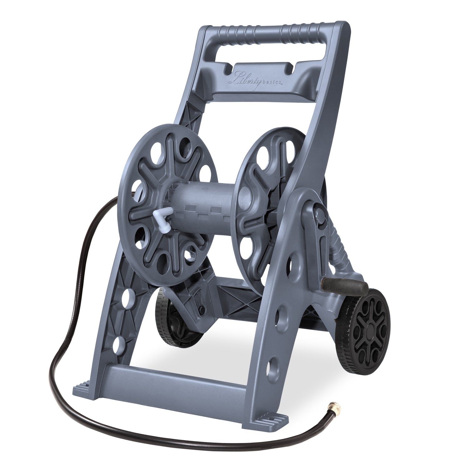 The Liberty Basics Two Wheel Hose Cart offers a contemporary and stylish high density resin solution for storing your garden hose, this cart offers great maneuverability and stability with its two wheel design and fold down feature for storage.